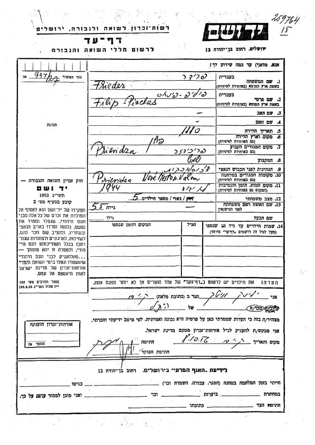 (To add to the Central Database of Shoah Victims’ Names)
