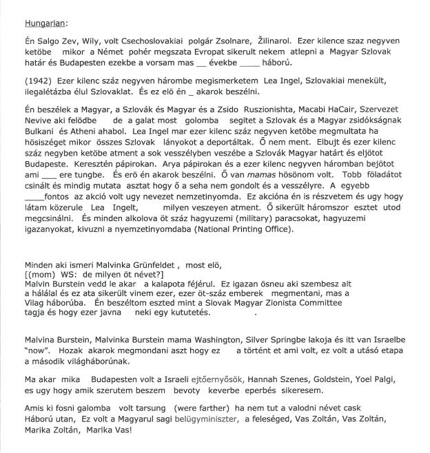Read and Listen to what Wily Salgo said about Malvina in Hebrew, Hungarian, and Slovak, and translated into English - not ready yet